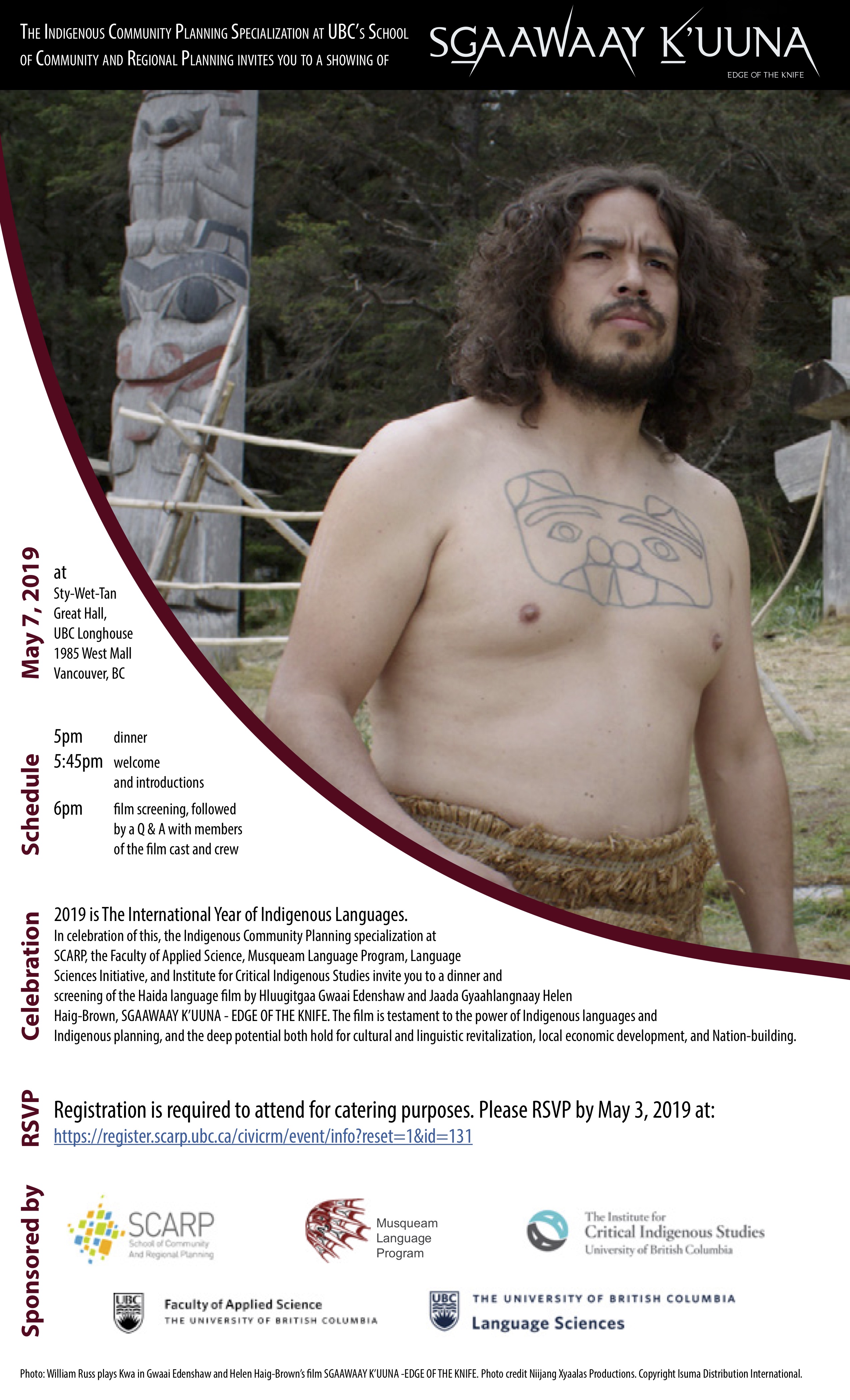 Dinner and screening of Sgaawaay K'uuna - Edge of the Knife