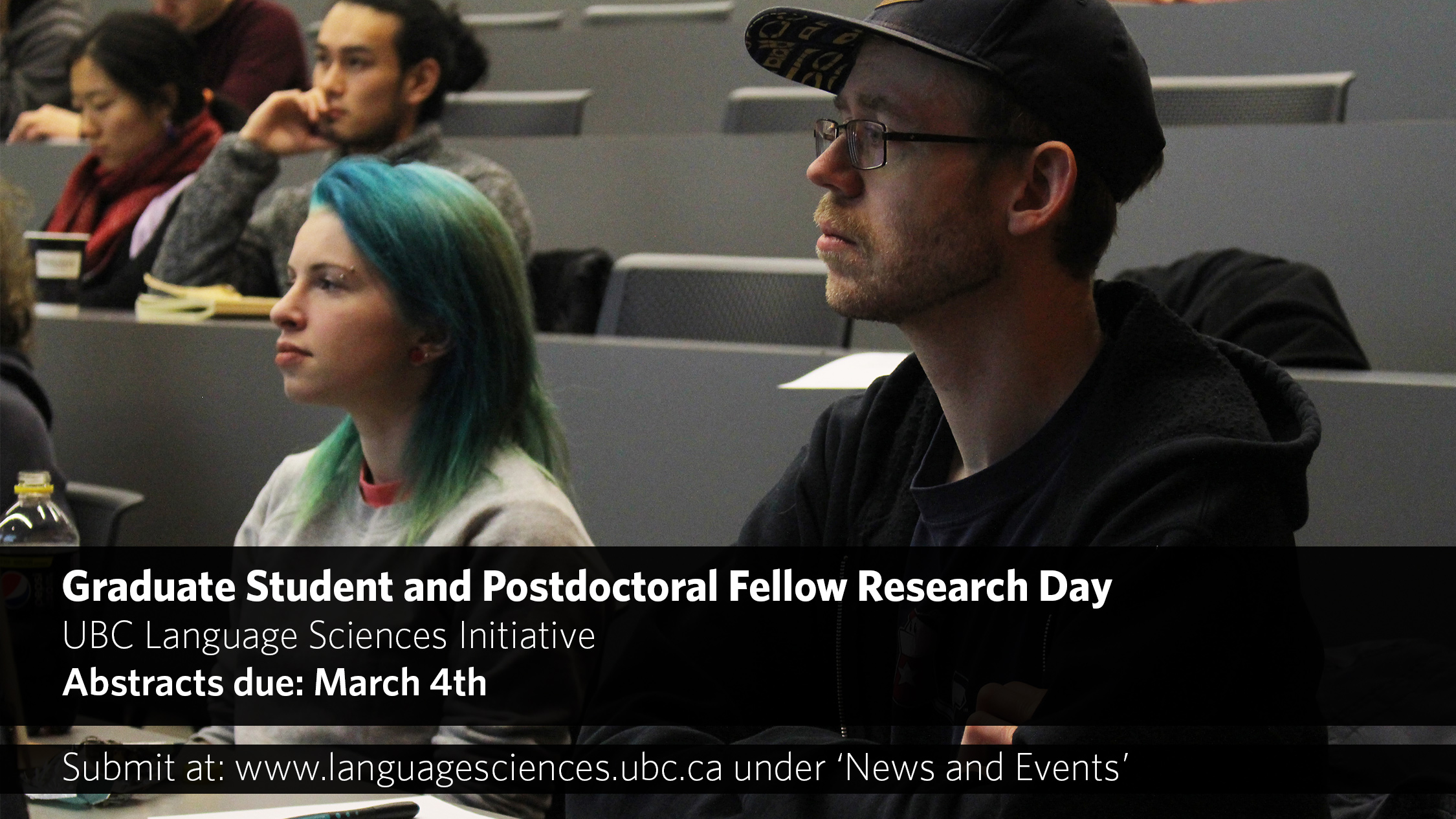 The deadline for submitting abstracts for the Language Sciences Graduate Student & Postdoctoral Research Day has been extended to 11:59pm March 4, 2019.