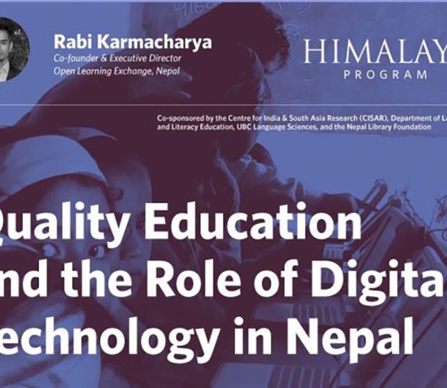Please join us for Quality Education and the Role of Digital Technology in Nepal, a talk by Rabi Karmacharya, a social entrepreneur who helped launch OLE Nepal with the vision to use technology to improve the quality of primary education in Nepal’s public schools, and to transform the way children learn through engagement, exploration and experi